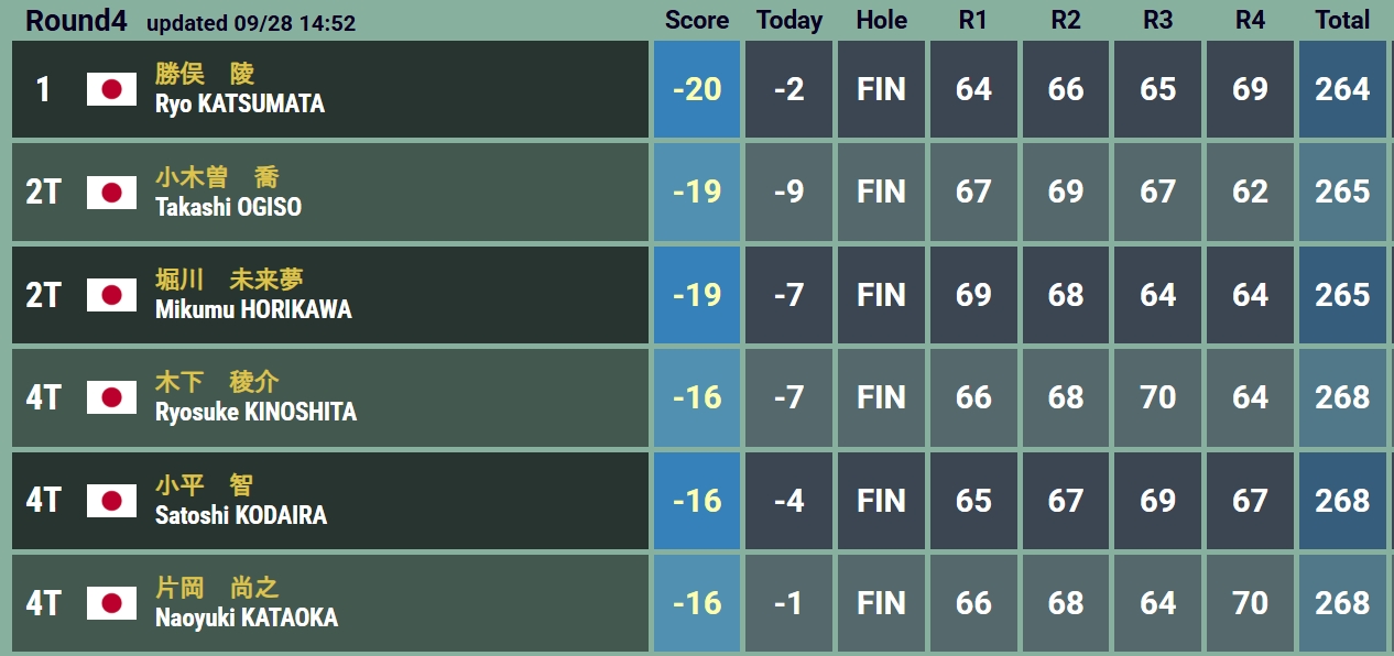 - 優勝:勝俣 陵 −20(264打/64・66・65・69)