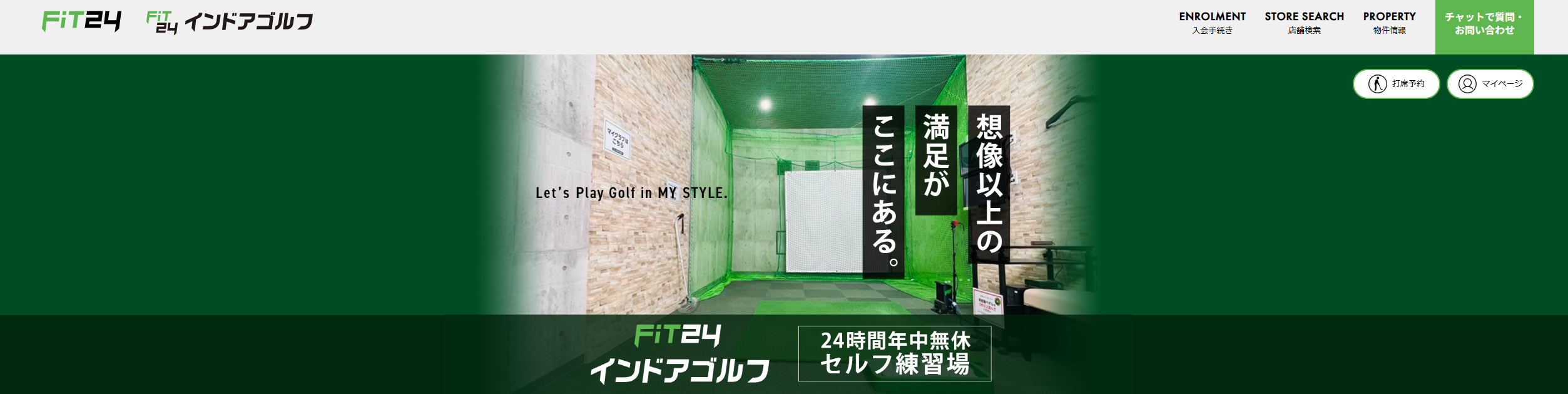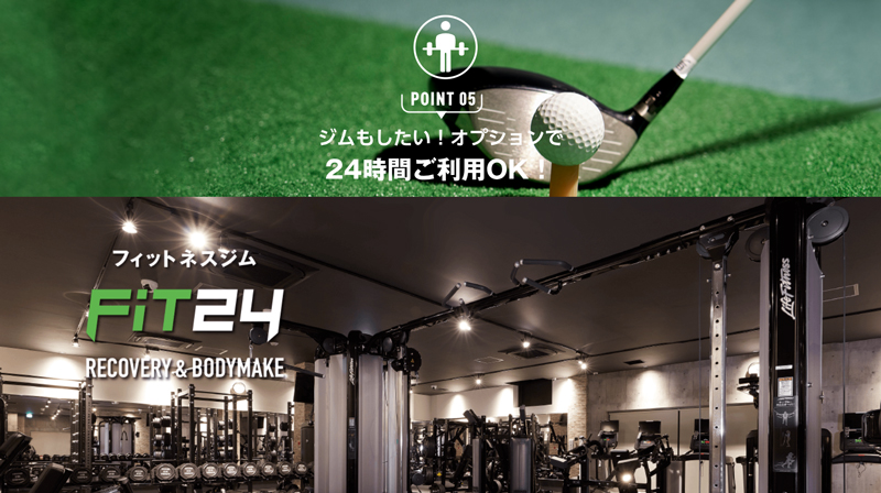 FiT24インドアゴルフは、全国で展開するトレーニングジム「FiT24」に併設したインドアゴルフ練習場。