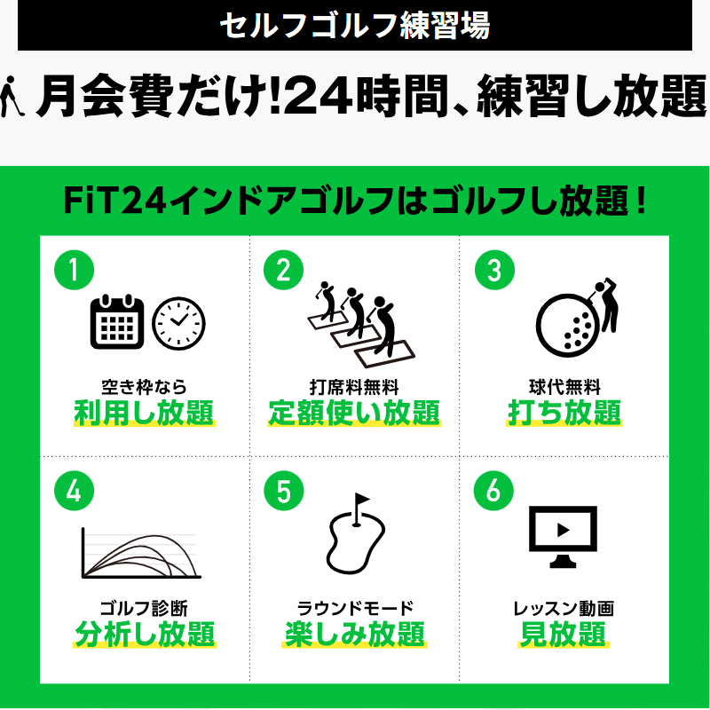 FiT24インドアゴルフは、「24時間好きなだけ練習できる」