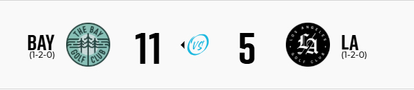 TGL(Tech-Infused Golf League)2026シーズン 第8戦(Match 108) は、 The Bay Golf Club が Los Angeles Golf Club を 11-5で圧倒して今季初勝利 を飾った一戦となった。