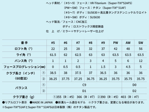 - #6/38インチ #7/37.5インチ #8/37インチ #9/36.5インチ PW/36インチ